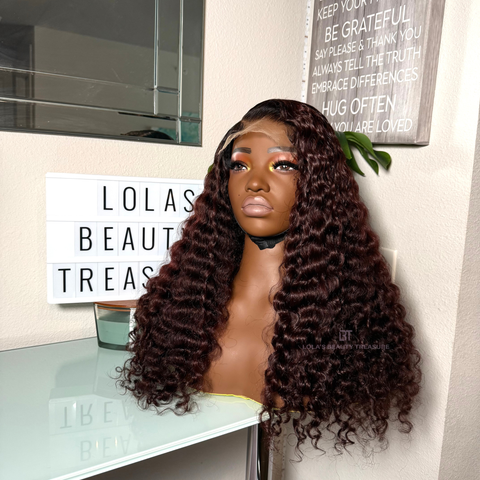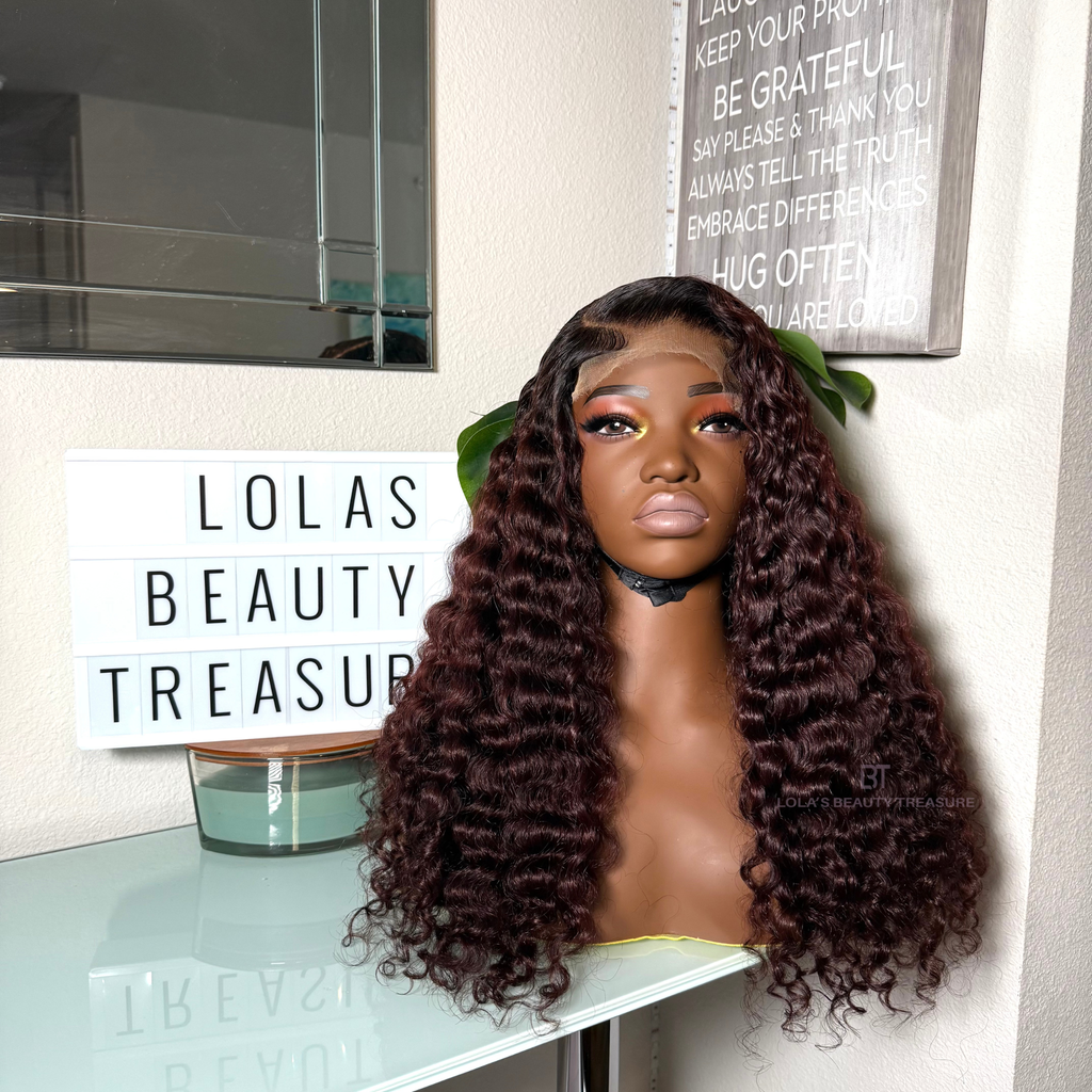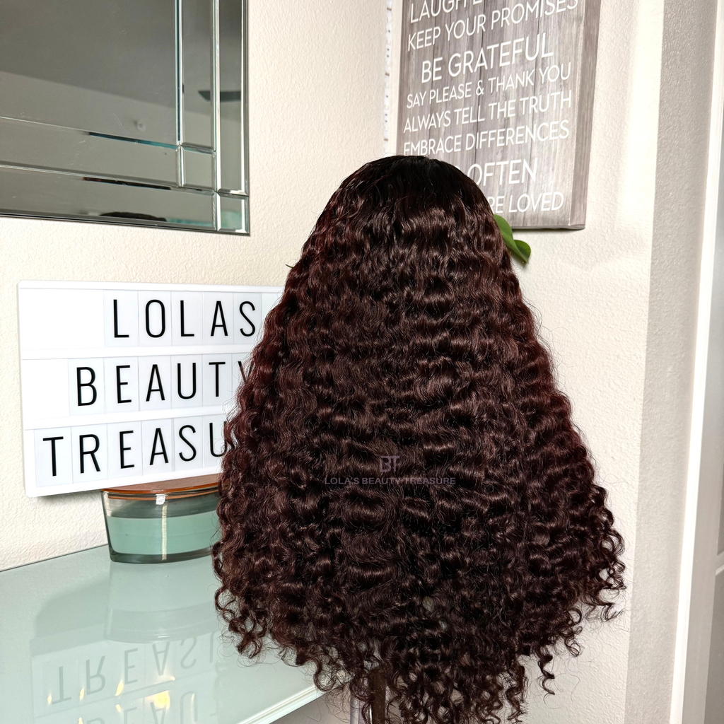 AMARI is our Ready-To-Wear burgundy unit made using our FIJI Curly bundles and 5*5 HD Closure.