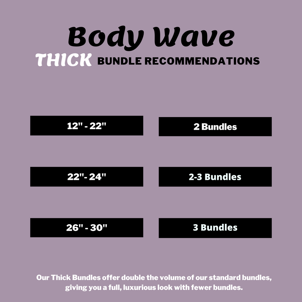 Our Thick Bundles offer double the volume of standard bundles, giving you a full, luxurious look with fewer bundles.