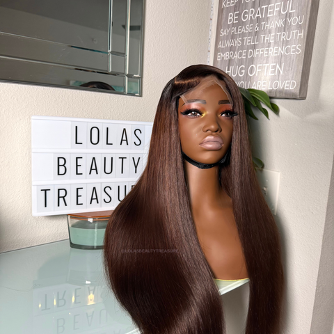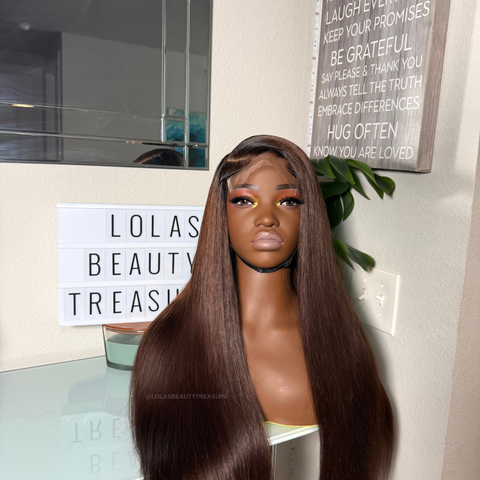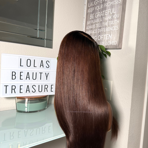 MELANIN is our dark brown Ready-To-Wear unit using our Silky Straight bundles and 5*5 HD Closure.